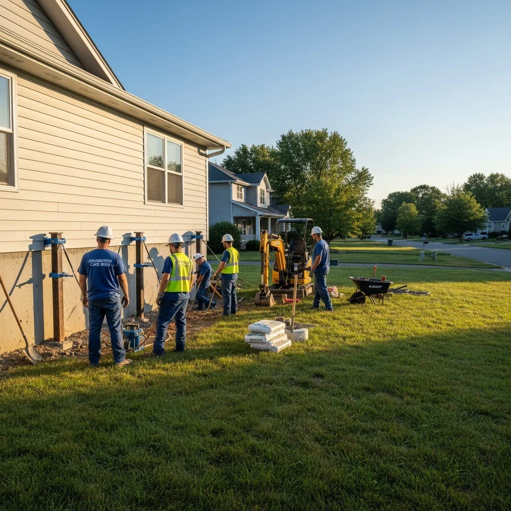 Stabilize settling foundations with push piers, helical piers, and engineered underpinning.